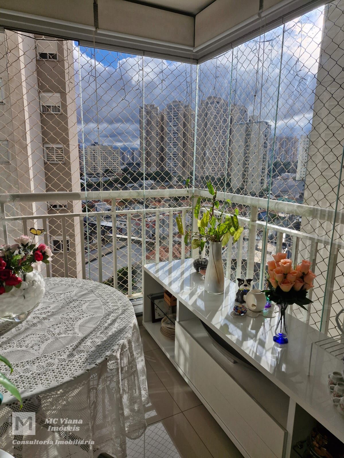 Este apartamento de 54 m² foi cuidadosamente decorado e projetado para oferecer o máximo de conforto e funcionalidade. A sala se conecta a uma ampla varanda, ideal para relaxar, que conta com fechamento em vidro blindex e rede de proteção, garantindo segurança e versatilidade. O ambiente interno é valorizado por um projeto de iluminação moderno, com teto rebaixado em gesso e luzes embutidas que criam uma atmosfera acolhedora.
