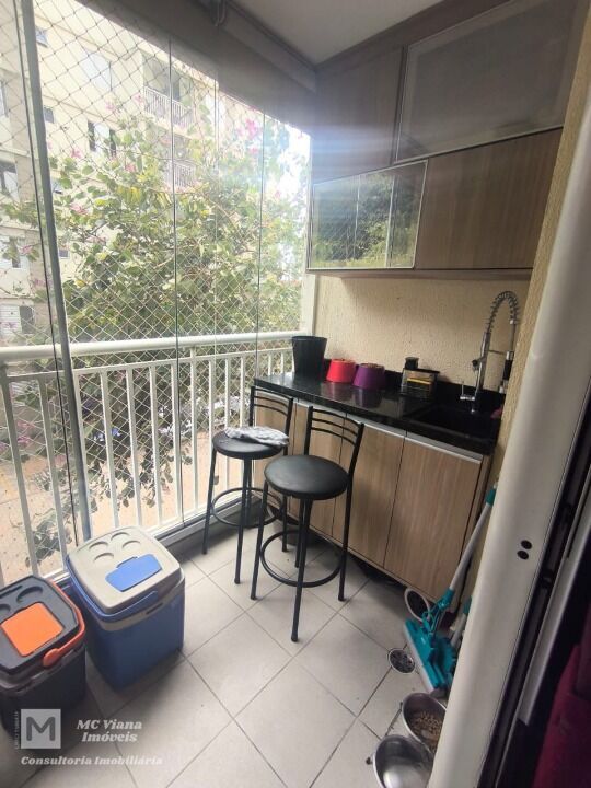 A cozinha possui área de serviço integrada e a varanda foi transformada em um espaço gourmet com bancada e armários planejados. O condomínio oferece uma infraestrutura completa de lazer e segurança, incluindo portaria 24 horas, elevador, piscina, academia, quadra esportiva, salão de festas e playground.