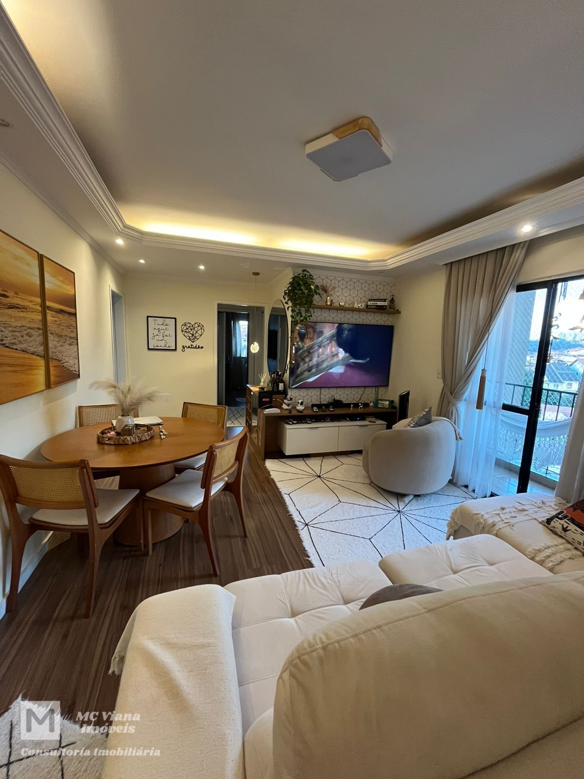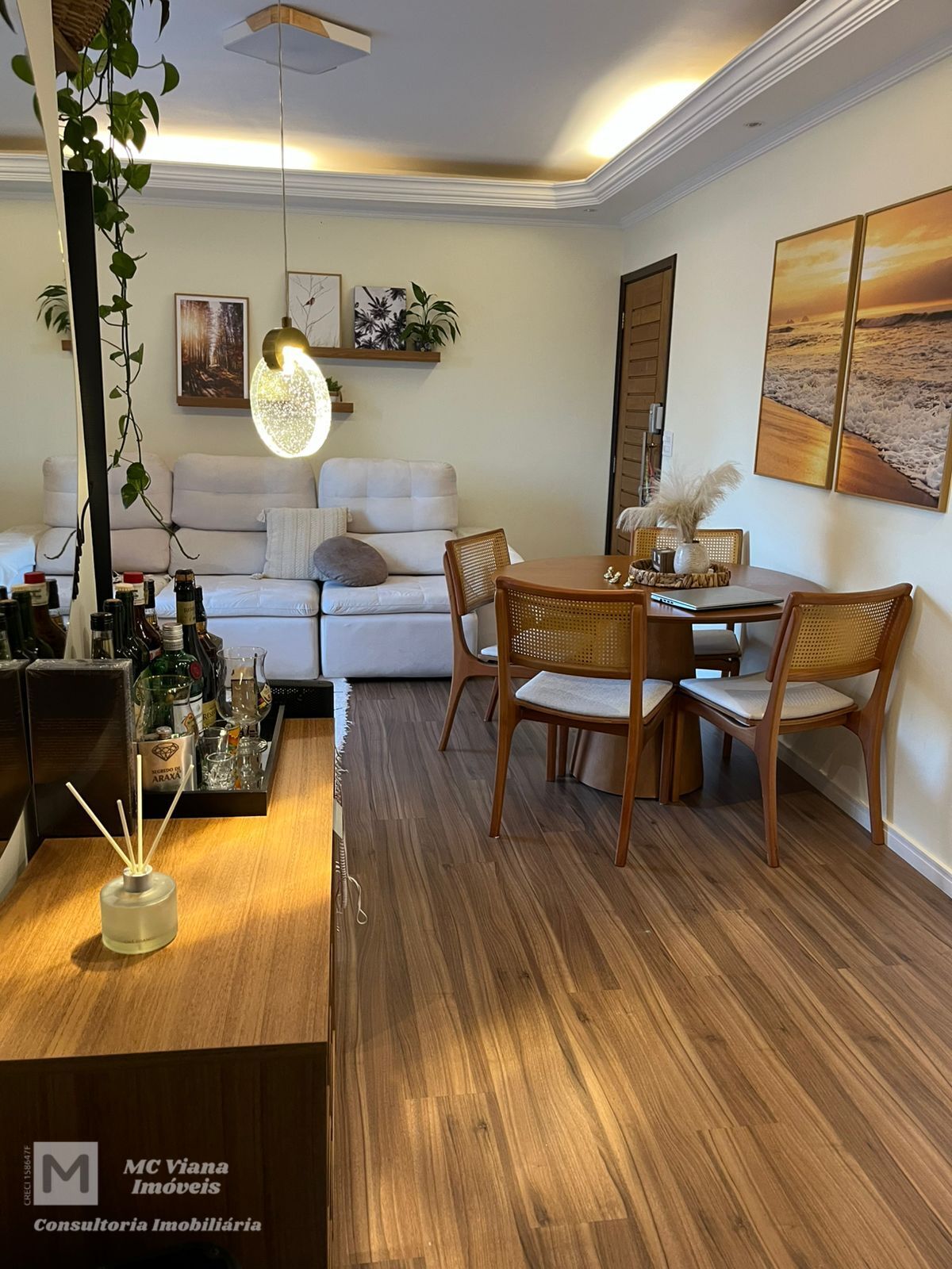 Este é um charmoso apartamento pronto para morar, ideal para quem busca conforto e praticidade. A sala, que se integra com a sala de jantar, possui um ambiente aconchegante e bem iluminado, com espaço para rack, barzinho e uma mesa redonda que otimiza o espaço. A sacada oferece uma vista privilegiada para a área da piscina do condomínio, perfeita para relaxar.