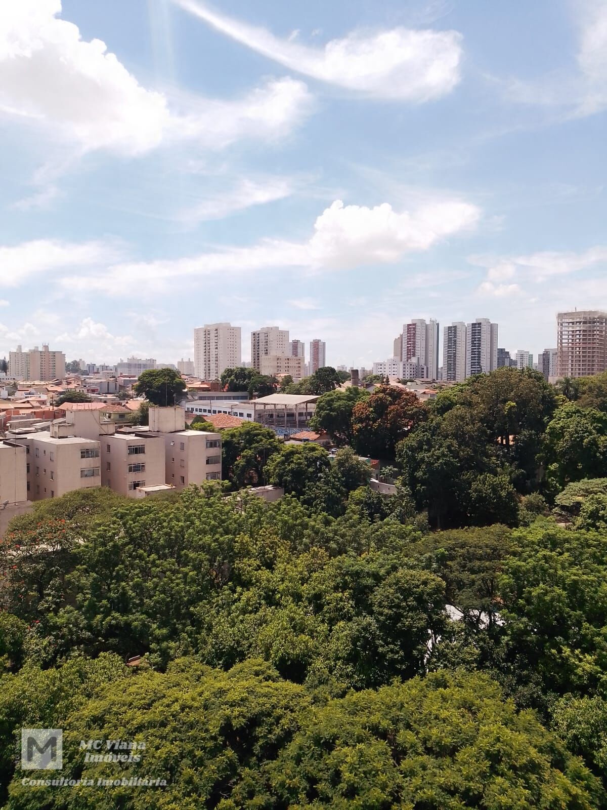 Esta é uma excelente opção para quem busca um refúgio urbano iluminado e funcional. O apartamento destaca-se pela sala de estar integrada à varanda, que oferece uma vista livre e privilegiada para a copa das árvores e o skyline da região. O acabamento em piso laminado claro percorre os ambientes sociais, conferindo uma sensação de amplitude e modernidade, complementada por marcenaria planejada que otimiza cada metro quadrado.