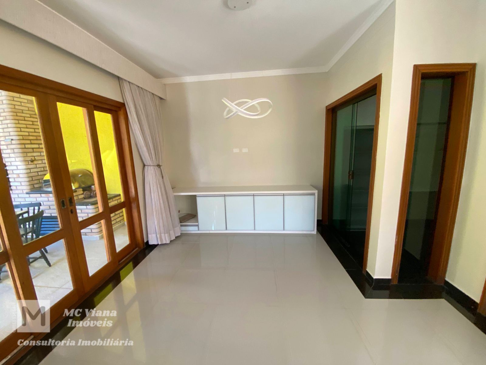 A área externa é um verdadeiro convite ao lazer. A piscina com cascata é o ponto alto, cercada por um gramado bem cuidado e cadeiras de sol. A área gourmet com churrasqueira e forno de pizza é o espaço ideal para receber amigos e familiares.