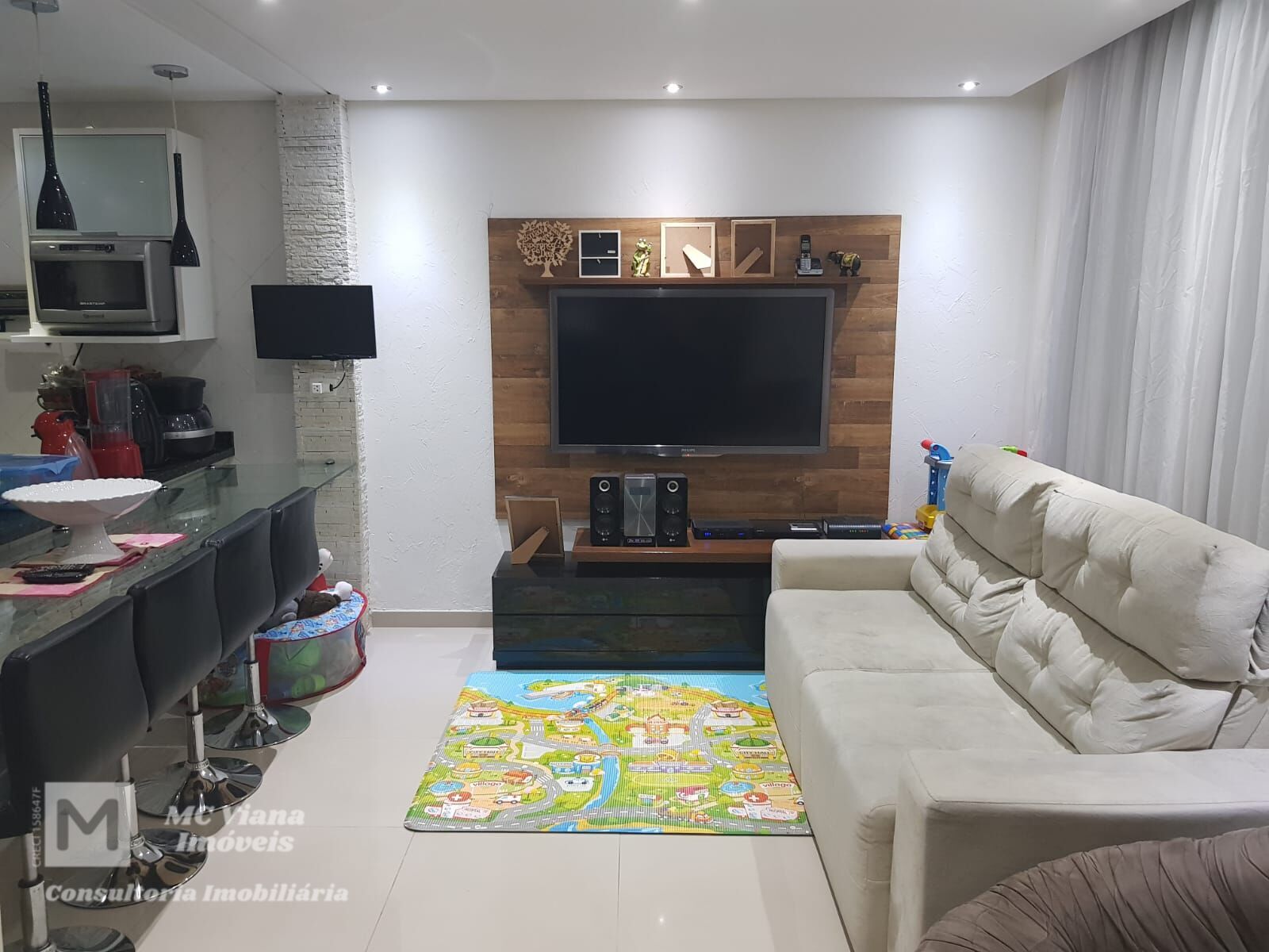 Sobrado em condomínio com 2 dormitórios, sendo 1 suíte com varanda e ar condicionado, pisos laminados ( planta original com 3 dormitórios, porém 1 transformado em closet reversível), sala com barzinho e excelente acabamento em pedras canjiquinhas e piso porcelanato, cozinha americana planejada, lavanderia, quintal com churrasqueira e forno de pizza, 2 vagas de garagem cobertas,