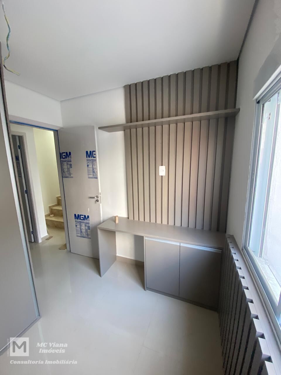 O imóvel possui três dormitórios, sendo um deles uma suíte, garantindo conforto e privacidade aos moradores. Quartos com armários planejados e bancadas para estudo ou trabalho, otimizando o espaço. As paredes com painéis de madeira adicionam um toque de sofisticação e modernidade aos ambientes.