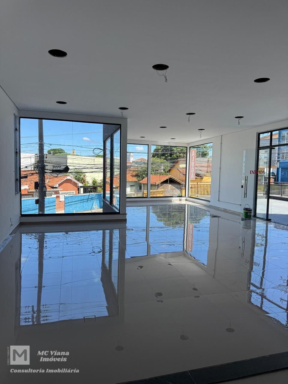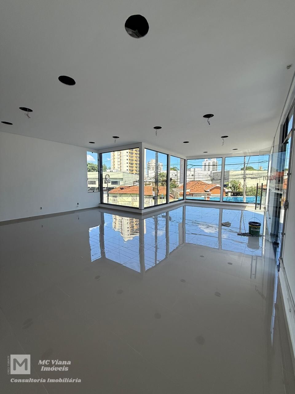Amplo e moderno salão comercial, com 355 m², ideal para escritórios ou clínicas que buscam uma localização privilegiada. O espaço é banhado por luz natural, graças às suas grandes janelas de vidro, que oferecem uma vista deslumbrante da cidade e criam um ambiente convidativo e produtivo. O piso de porcelanato de alto brilho e a iluminação embutida no teto complementam a estética contemporânea do imóvel.